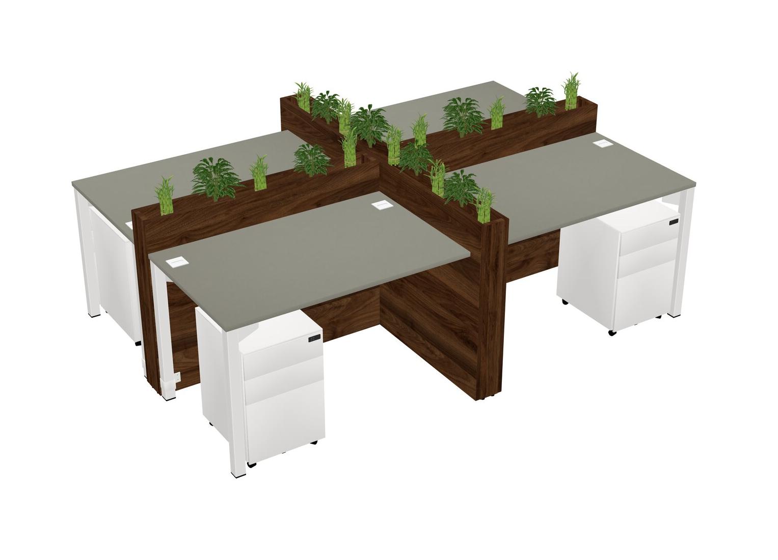 Grey Shadows Rectangular Shared Office Desk For 4 Persons Let Nature Help Flourish Your Productivity The Base Comes With An Adjustable Shelf To Provide Space For Pots (Pots & Plants Sold Separately)