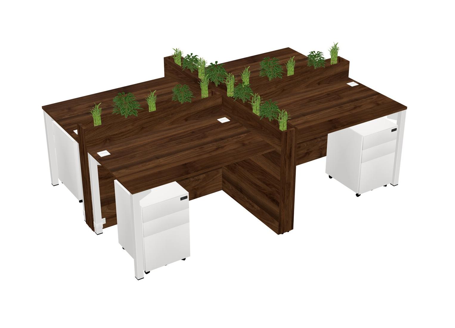 Columbia Walnut Rectangular Shared Office Desk For 4 Persons Let Nature Help Flourish Your Productivity The Base Comes With An Adjustable Shelf To Provide Space For Pots (Pots & Plants Sold Separately)