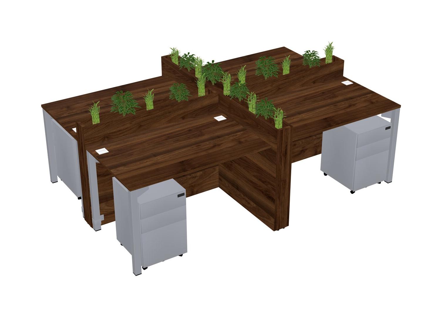 Columbia Walnut Rectangular Shared Office Desk For 4 Persons Let Nature Help Flourish Your Productivity The Base Comes With An Adjustable Shelf To Provide Space For Pots (Pots & Plants Sold Separately)