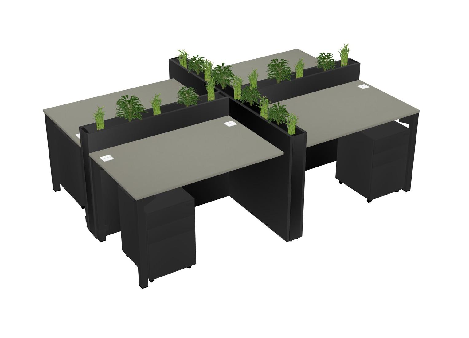 Grey Shadows Rectangular Shared Office Desk For 4 Persons Let Nature Help Flourish Your Productivity The Base Comes With An Adjustable Shelf To Provide Space For Pots (Pots & Plants Sold Separately)