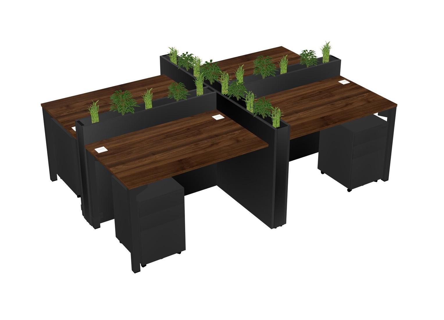 Columbia Walnut Rectangular Shared Office Desk For 4 Persons Let Nature Help Flourish Your Productivity The Base Comes With An Adjustable Shelf To Provide Space For Pots (Pots & Plants Sold Separately)