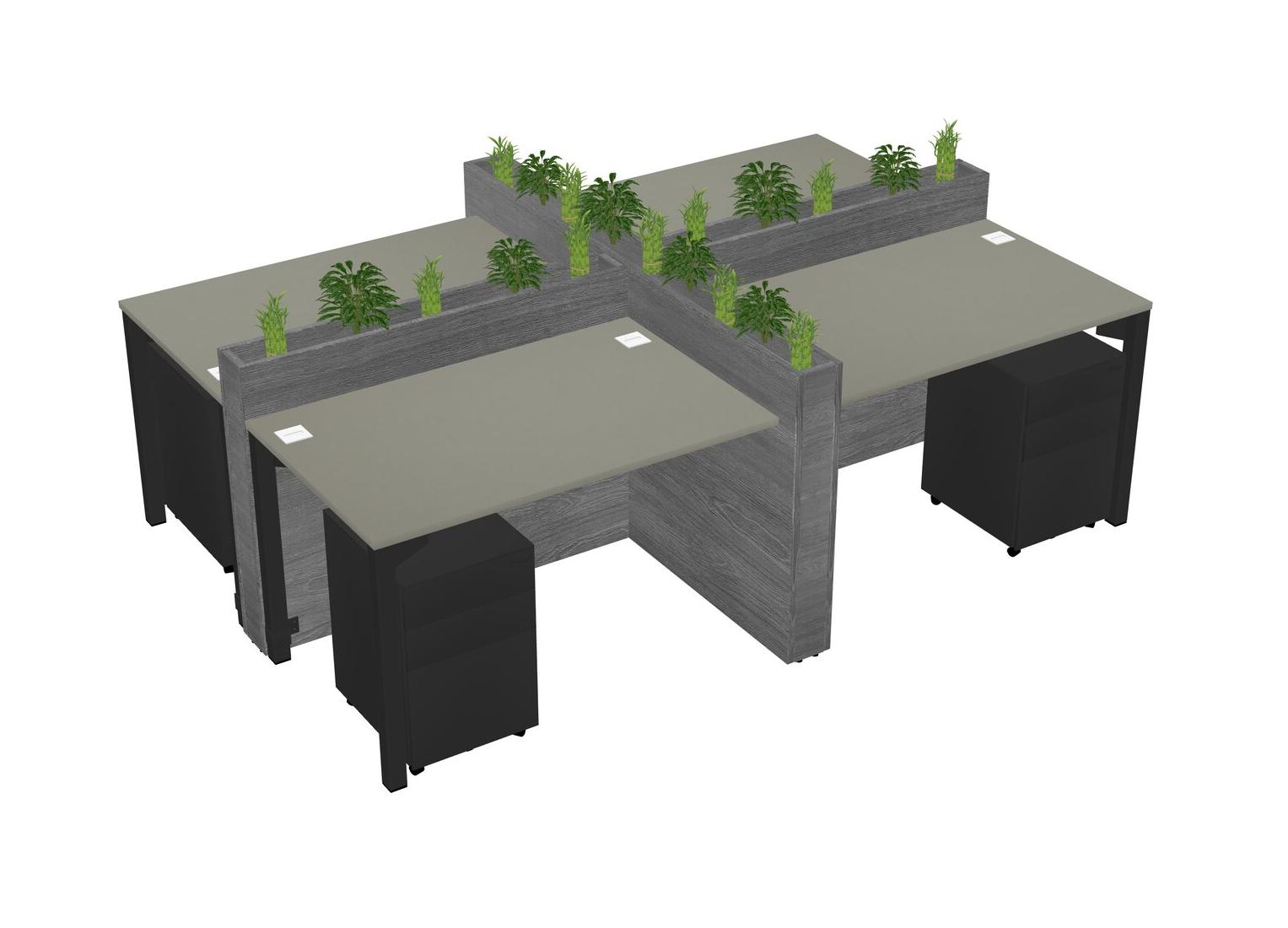 Grey Shadows Rectangular Shared Office Desk For 4 Persons Let Nature Help Flourish Your Productivity The Base Comes With An Adjustable Shelf To Provide Space For Pots (Pots & Plants Sold Separately)