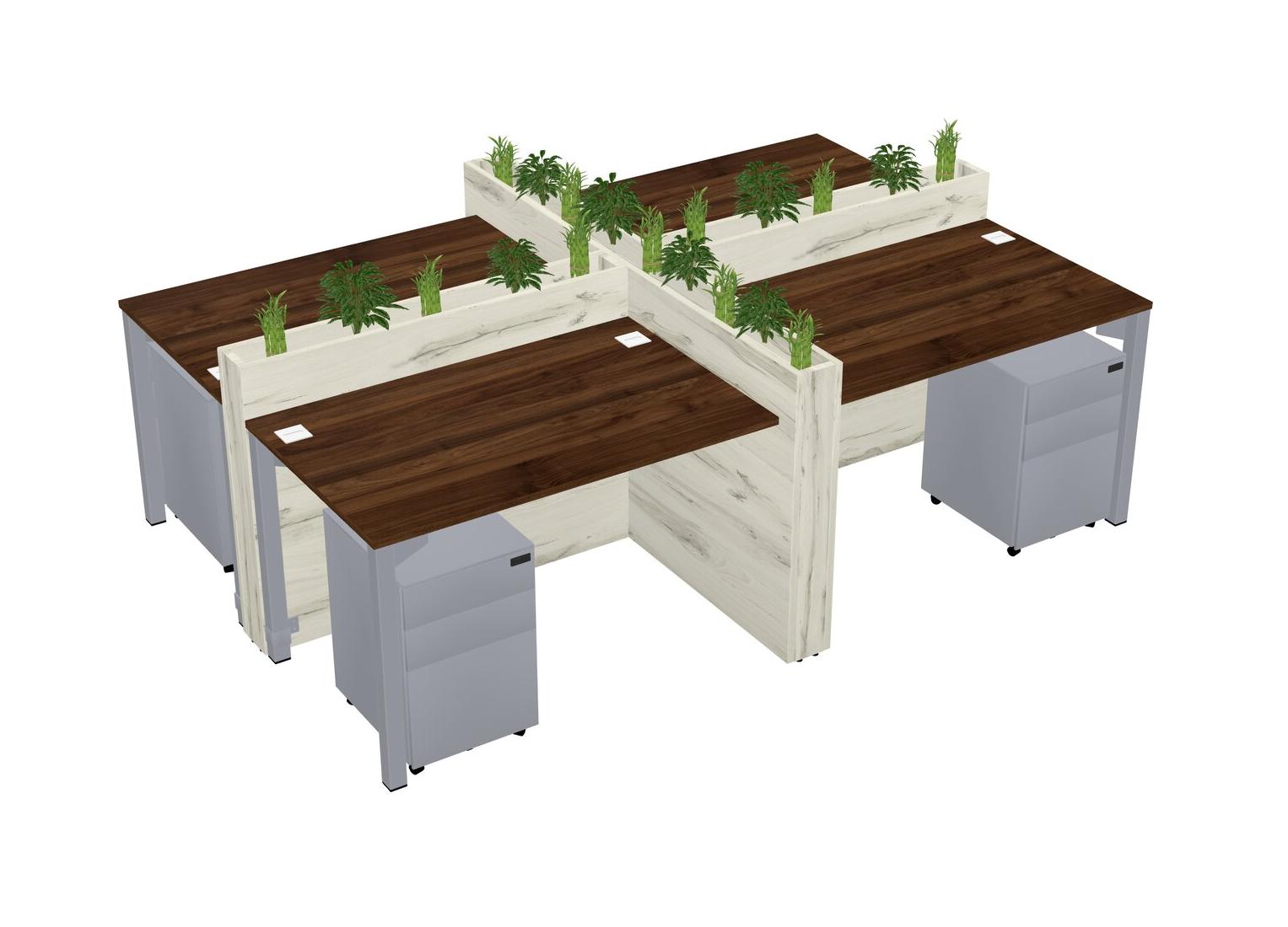 Columbia Walnut Rectangular Shared Office Desk For 4 Persons Let Nature Help Flourish Your Productivity The Base Comes With An Adjustable Shelf To Provide Space For Pots (Pots & Plants Sold Separately)