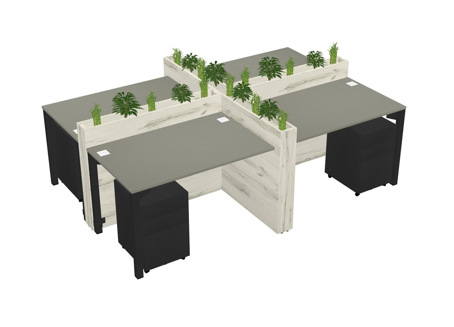 Grey Shadows Rectangular Shared Office Desk For 4 Persons Let Nature Help Flourish Your Productivity The Base Comes With An Adjustable Shelf To Provide Space For Pots (Pots & Plants Sold Separately)