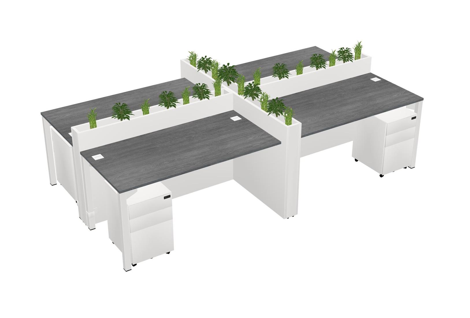 Grey Rectangular Shared Office Desk For 4 Persons Let Nature Help Flourish Your Productivity The Base Comes With An Adjustable Shelf To Provide Space For Pots (Pots & Plants Sold Separately)