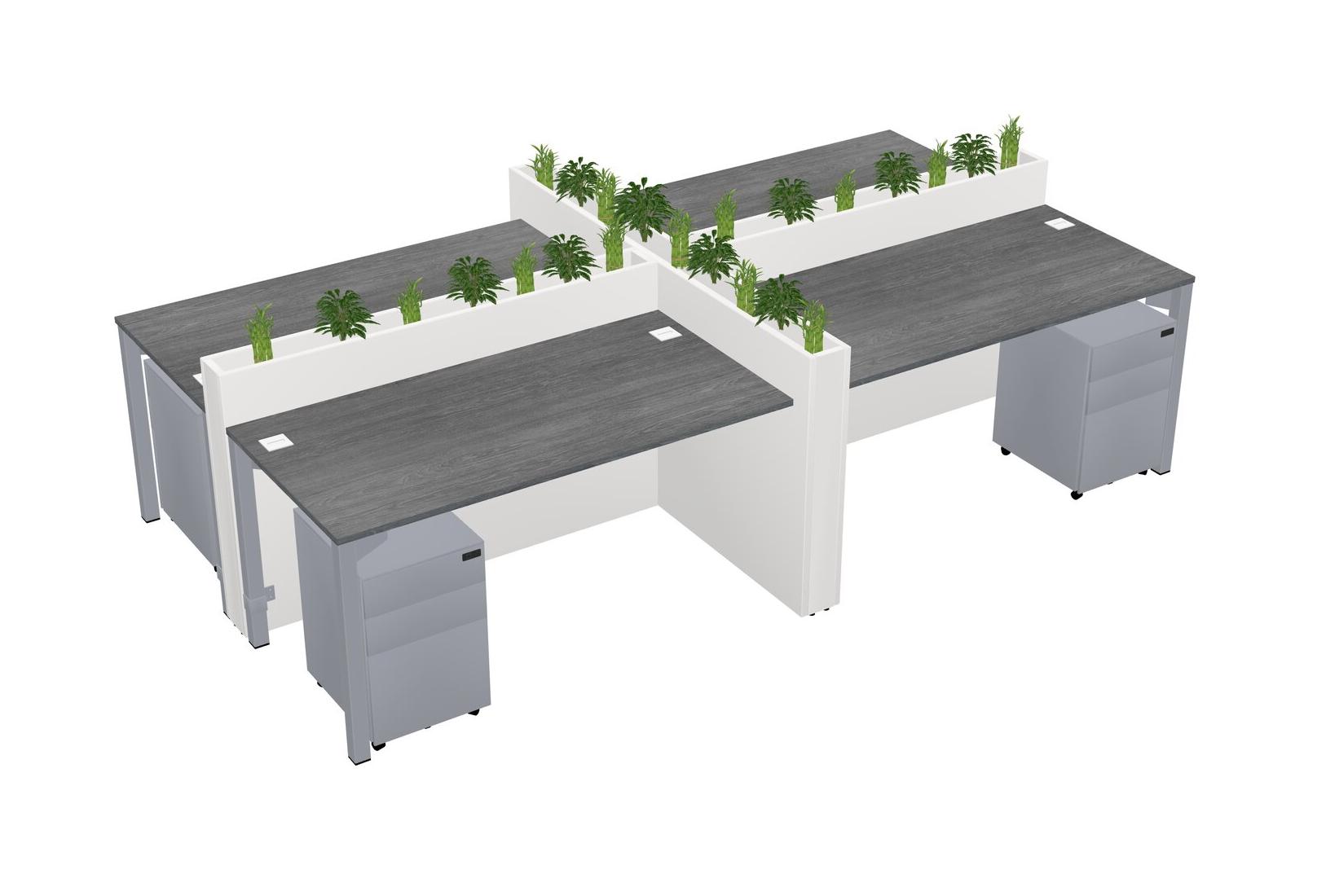 Grey Rectangular Shared Office Desk For 4 Persons Let Nature Help Flourish Your Productivity The Base Comes With An Adjustable Shelf To Provide Space For Pots (Pots & Plants Sold Separately)