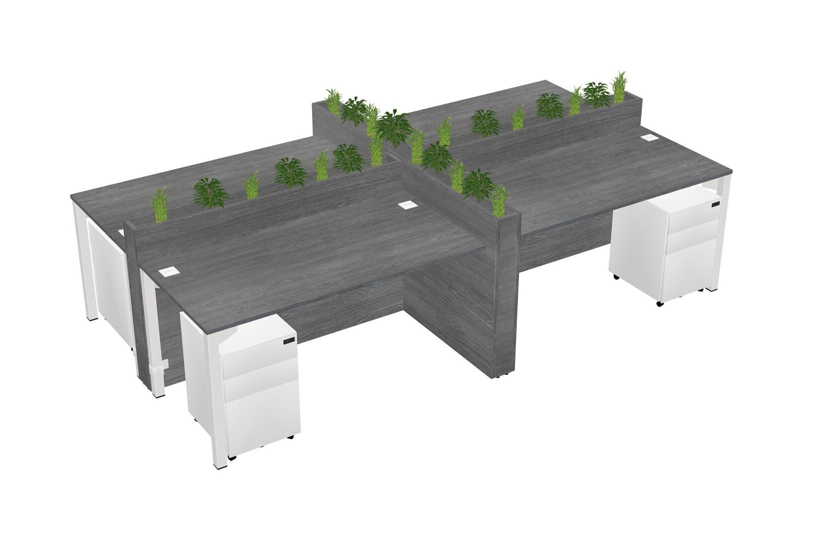 Grey Rectangular Shared Office Desk For 4 Persons Let Nature Help Flourish Your Productivity The Base Comes With An Adjustable Shelf To Provide Space For Pots (Pots & Plants Sold Separately)