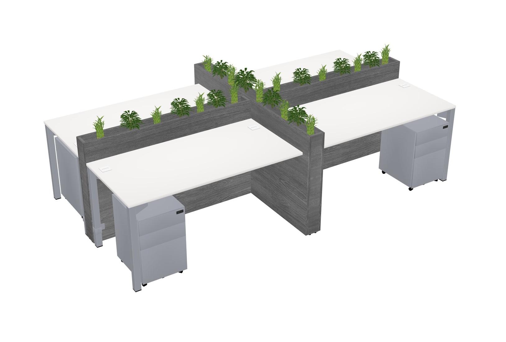 White Rectangular Shared Office Desk For 4 Persons Let Nature Help Flourish Your Productivity The Base Comes With An Adjustable Shelf To Provide Space For Pots (Pots & Plants Sold Separately)