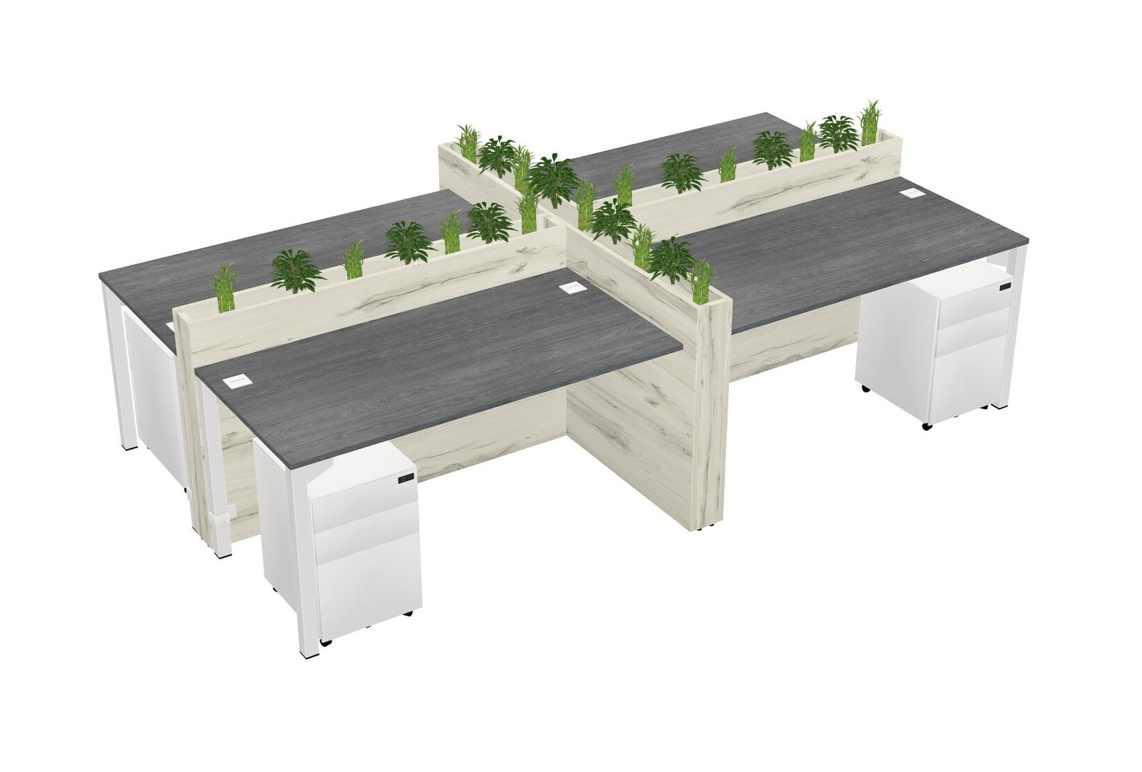 Grey Rectangular Shared Office Desk For 4 Persons Let Nature Help Flourish Your Productivity The Base Comes With An Adjustable Shelf To Provide Space For Pots (Pots & Plants Sold Separately)