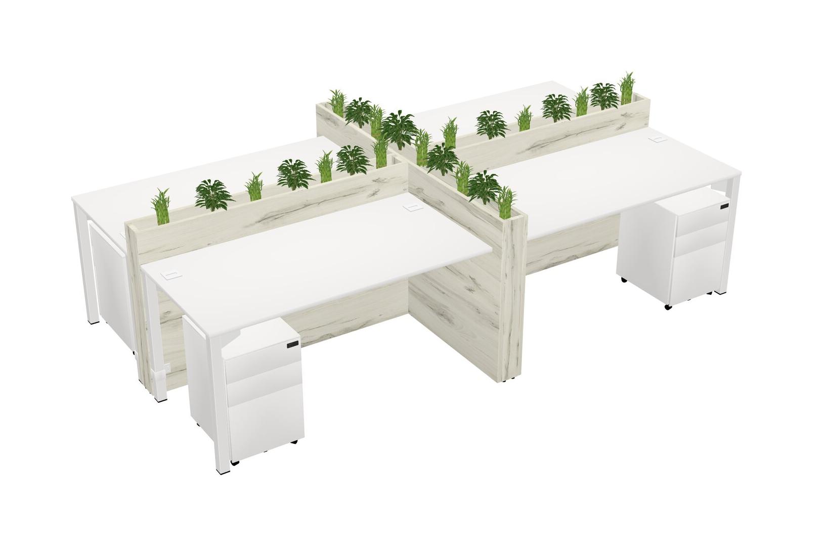 White Rectangular Shared Office Desk For 4 Persons Let Nature Help Flourish Your Productivity The Base Comes With An Adjustable Shelf To Provide Space For Pots (Pots & Plants Sold Separately)