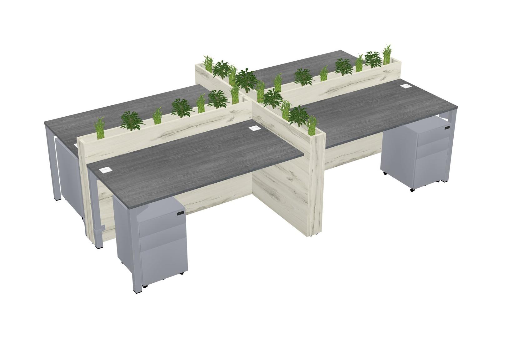 Grey Rectangular Shared Office Desk For 4 Persons Let Nature Help Flourish Your Productivity The Base Comes With An Adjustable Shelf To Provide Space For Pots (Pots & Plants Sold Separately)