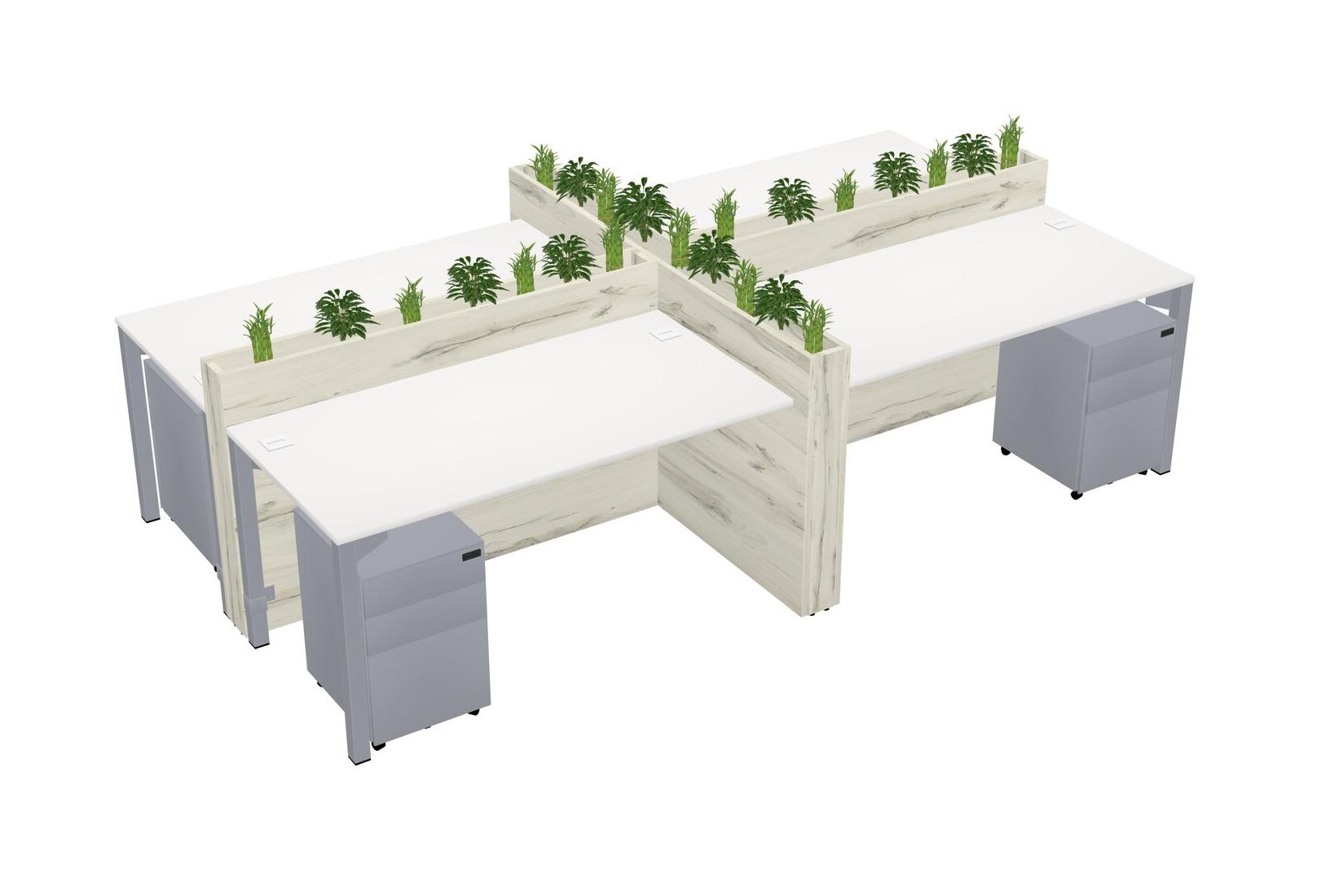 White Rectangular Shared Office Desk For 4 Persons Let Nature Help Flourish Your Productivity The Base Comes With An Adjustable Shelf To Provide Space For Pots (Pots & Plants Sold Separately)