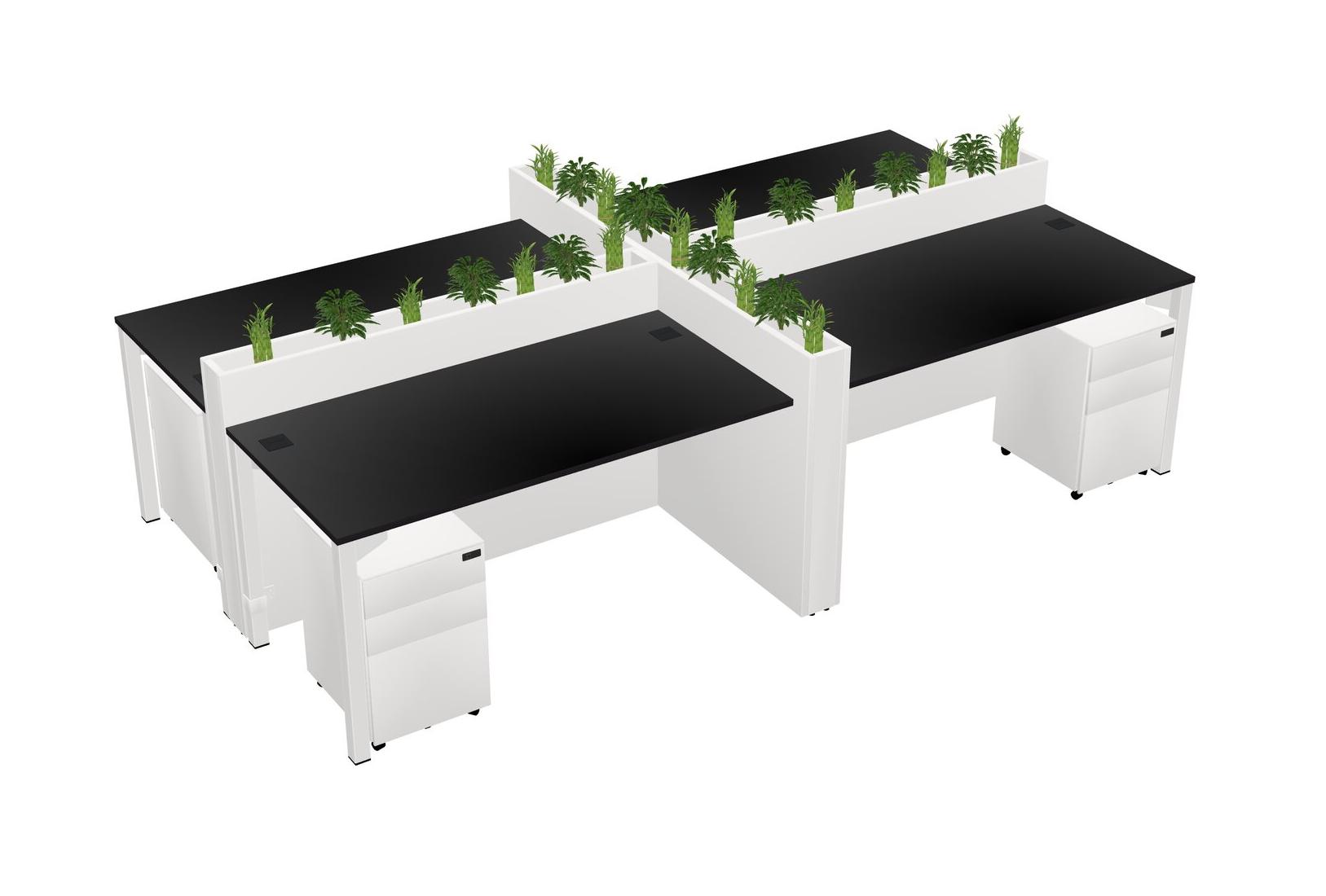 Black Rectangular Shared Office Desk For 4 Persons Let Nature Help Flourish Your Productivity The Base Comes With An Adjustable Shelf To Provide Space For Pots (Pots & Plants Sold Separately)