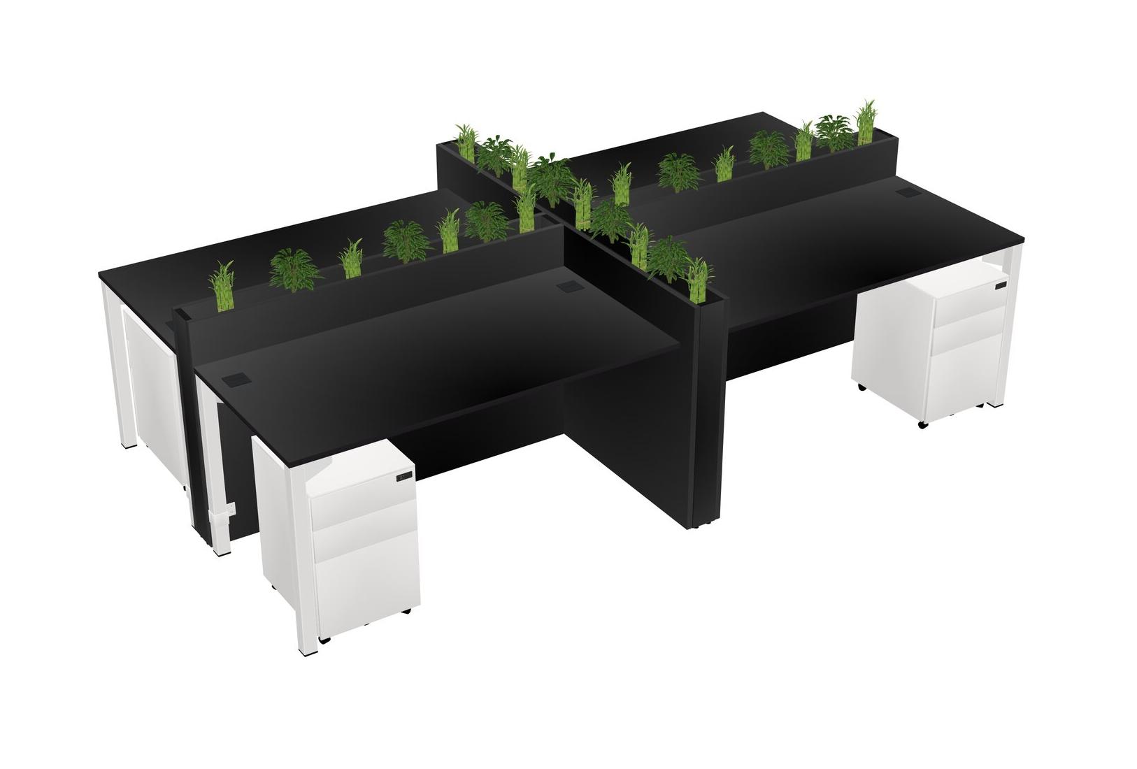 Black Rectangular Shared Office Desk For 4 Persons Let Nature Help Flourish Your Productivity The Base Comes With An Adjustable Shelf To Provide Space For Pots (Pots & Plants Sold Separately)