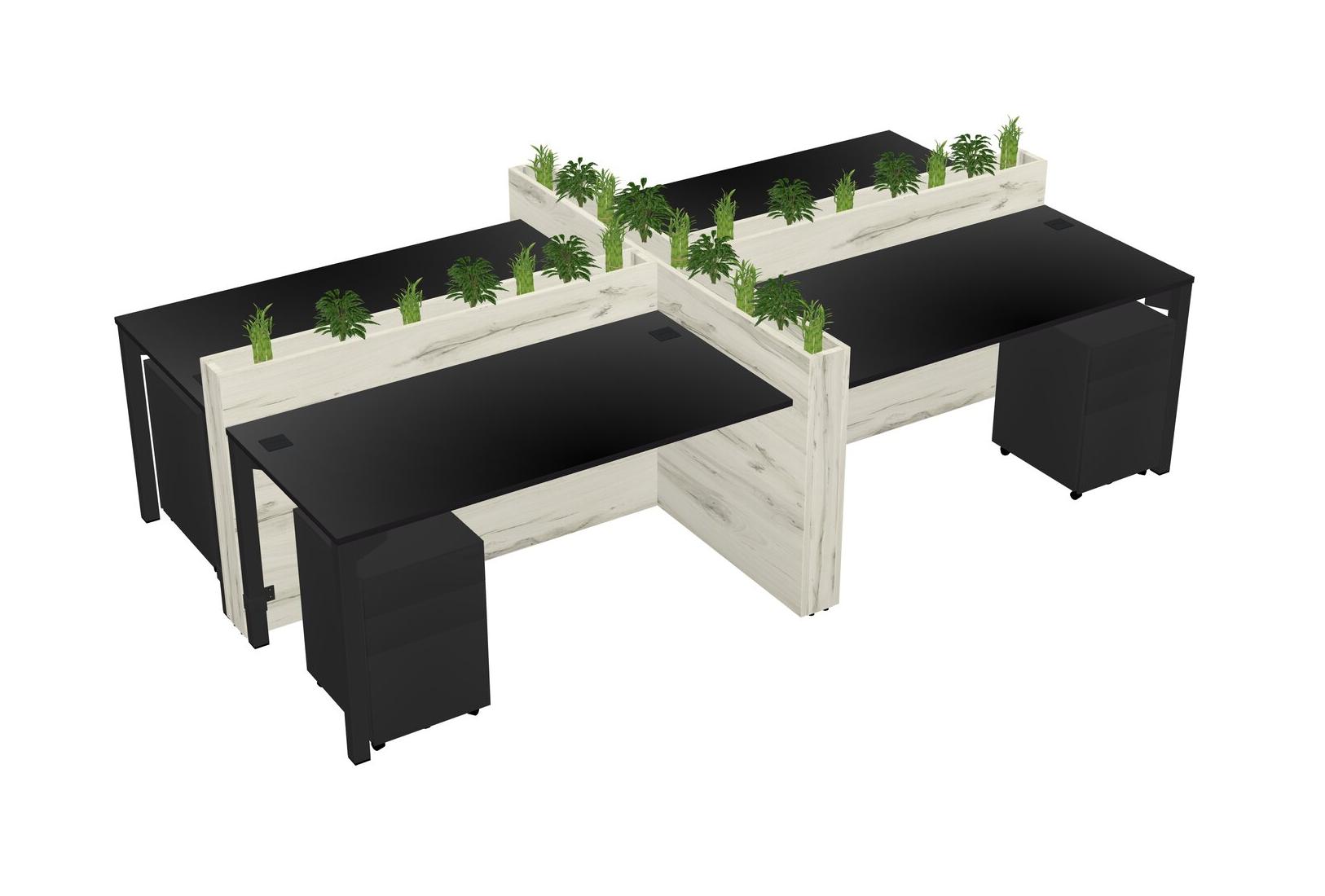 Black Rectangular Shared Office Desk For 4 Persons Let Nature Help Flourish Your Productivity The Base Comes With An Adjustable Shelf To Provide Space For Pots (Pots & Plants Sold Separately)