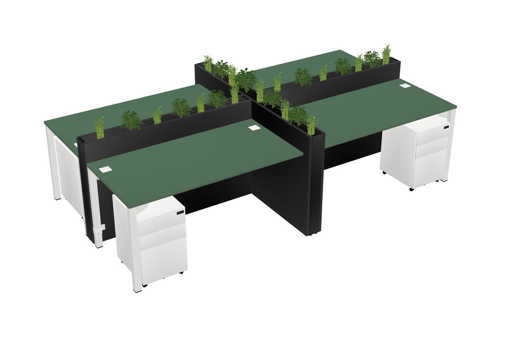 Green Rectangular Shared Office Desk For 4 Persons Let Nature Help Flourish Your Productivity The Base Comes With An Adjustable Shelf To Provide Space For Pots (Pots & Plants Sold Separately)
