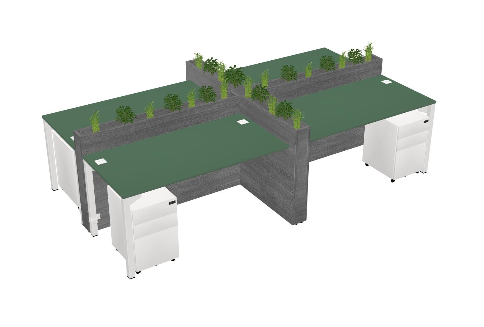 Green Rectangular Shared Office Desk For 4 Persons Let Nature Help Flourish Your Productivity The Base Comes With An Adjustable Shelf To Provide Space For Pots (Pots & Plants Sold Separately)