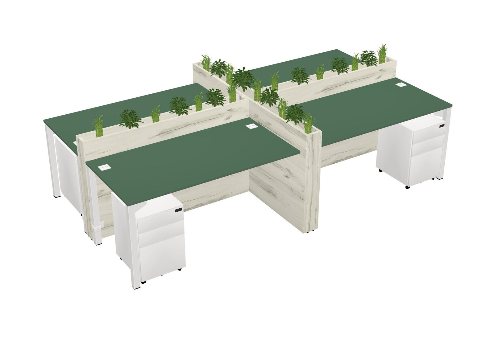 Green Rectangular Shared Office Desk For 4 Persons Let Nature Help Flourish Your Productivity The Base Comes With An Adjustable Shelf To Provide Space For Pots (Pots & Plants Sold Separately)