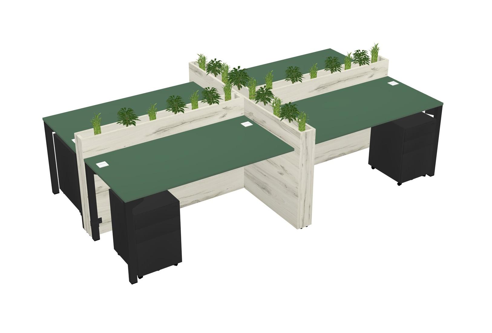Green Rectangular Shared Office Desk For 4 Persons Let Nature Help Flourish Your Productivity The Base Comes With An Adjustable Shelf To Provide Space For Pots (Pots & Plants Sold Separately)