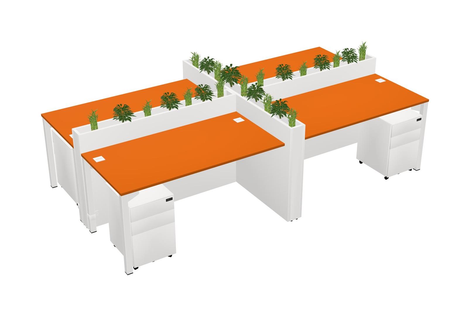 Orange Rectangular Shared Office Desk For 4 Persons Let Nature Help Flourish Your Productivity The Base Comes With An Adjustable Shelf To Provide Space For Pots (Pots & Plants Sold Separately)