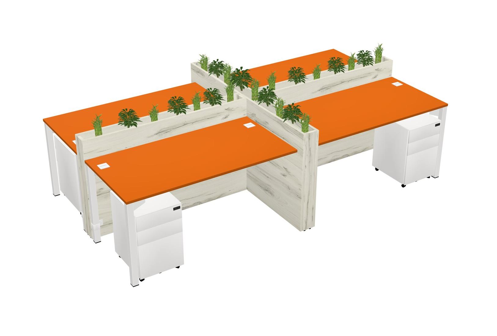 Orange Rectangular Shared Office Desk For 4 Persons Let Nature Help Flourish Your Productivity The Base Comes With An Adjustable Shelf To Provide Space For Pots (Pots & Plants Sold Separately)