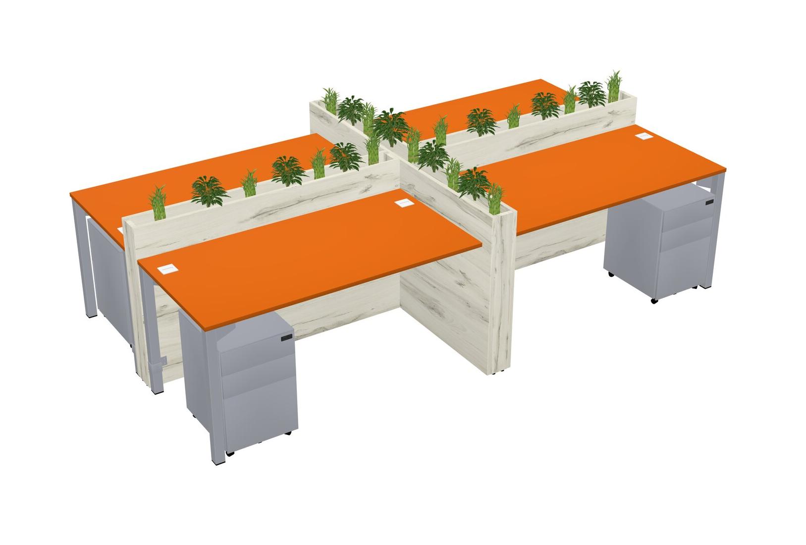 Orange Rectangular Shared Office Desk For 4 Persons Let Nature Help Flourish Your Productivity The Base Comes With An Adjustable Shelf To Provide Space For Pots (Pots & Plants Sold Separately)