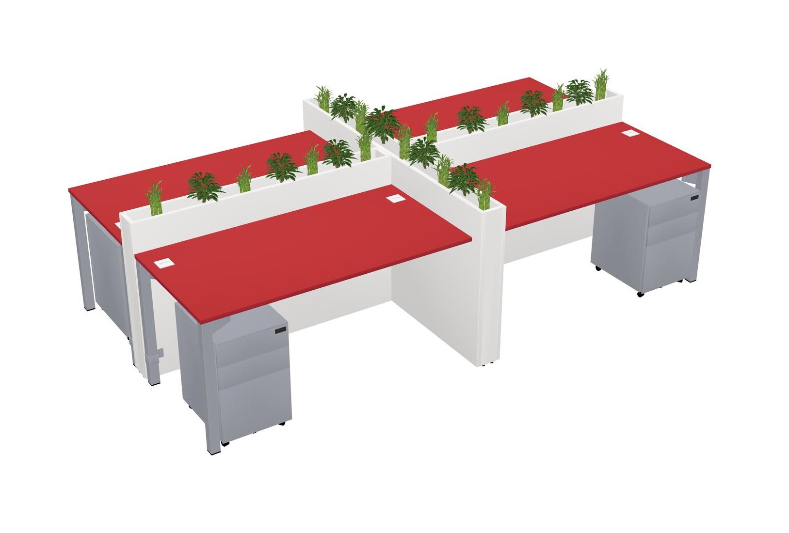 Prism Red Rectangular Shared Office Desk For 4 Persons Let Nature Help Flourish Your Productivity The Base Comes With An Adjustable Shelf To Provide Space For Pots (Pots & Plants Sold Separately)