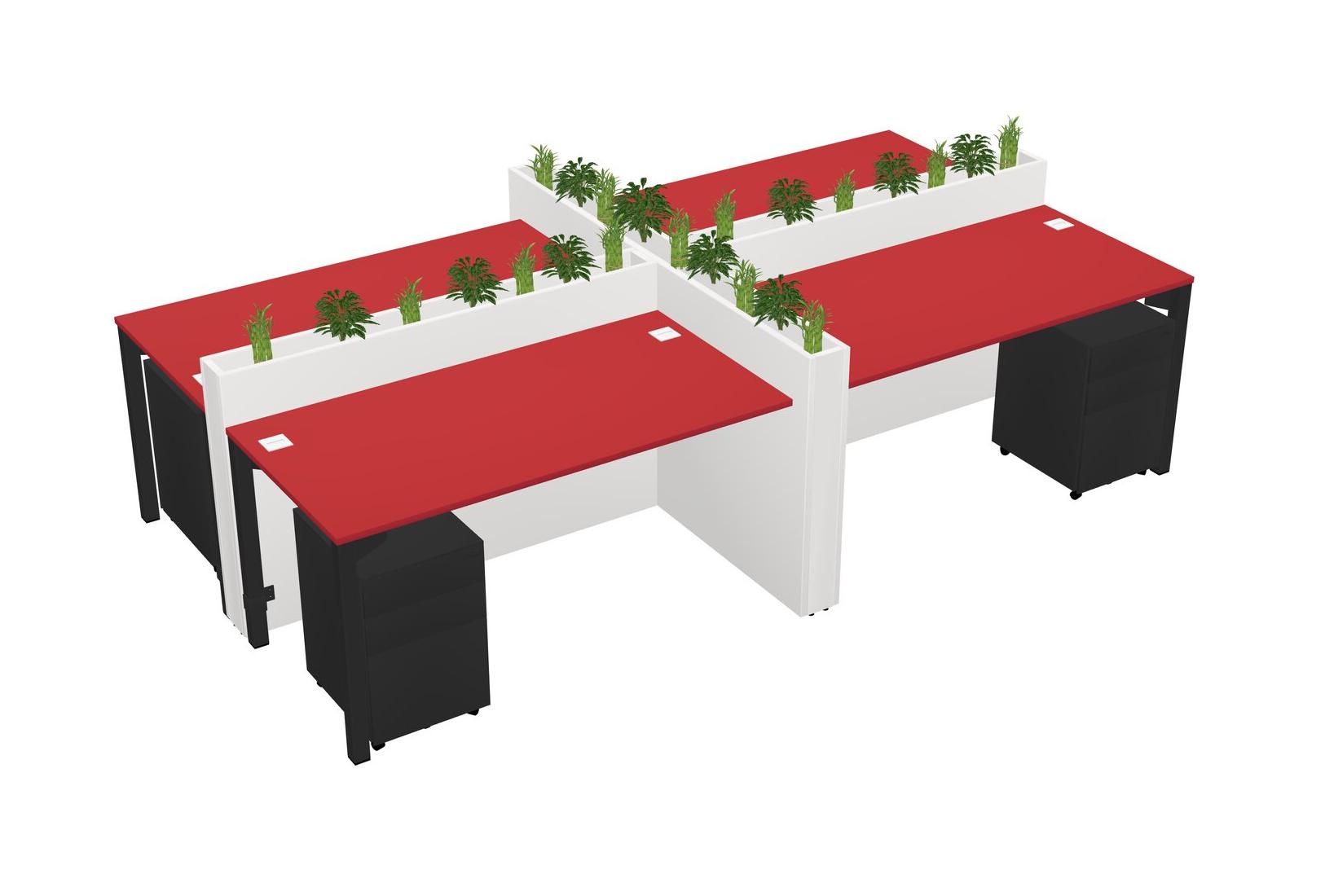 Prism Red Rectangular Shared Office Desk For 4 Persons Let Nature Help Flourish Your Productivity The Base Comes With An Adjustable Shelf To Provide Space For Pots (Pots & Plants Sold Separately)