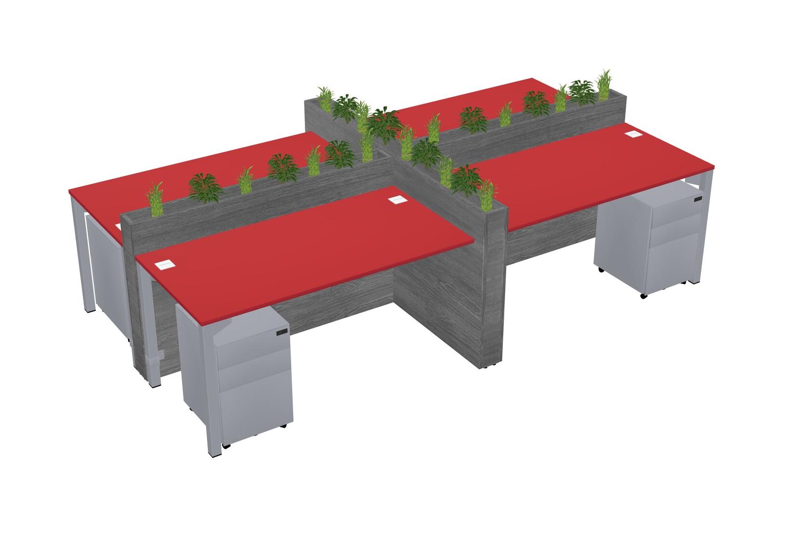 Prism Red Rectangular Shared Office Desk For 4 Persons Let Nature Help Flourish Your Productivity The Base Comes With An Adjustable Shelf To Provide Space For Pots (Pots & Plants Sold Separately)