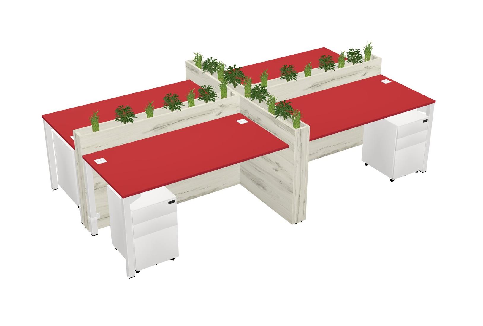 Prism Red Rectangular Shared Office Desk For 4 Persons Let Nature Help Flourish Your Productivity The Base Comes With An Adjustable Shelf To Provide Space For Pots (Pots & Plants Sold Separately)