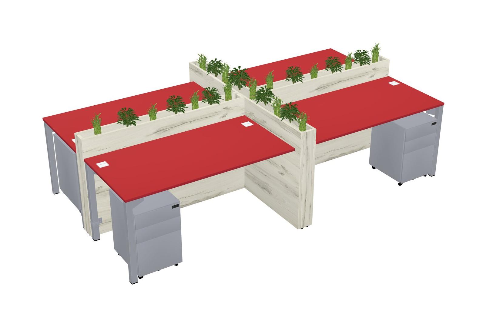 Prism Red Rectangular Shared Office Desk For 4 Persons Let Nature Help Flourish Your Productivity The Base Comes With An Adjustable Shelf To Provide Space For Pots (Pots & Plants Sold Separately)