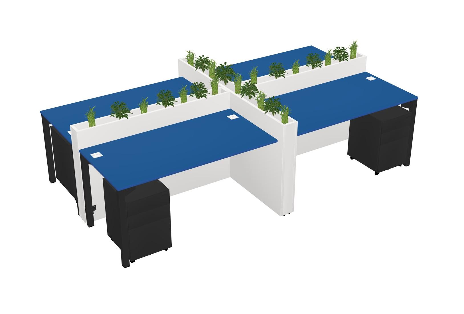 Prism Blue Rectangular Shared Office Desk For 4 Persons Let Nature Help Flourish Your Productivity The Base Comes With An Adjustable Shelf To Provide Space For Pots (Pots & Plants Sold Separately)