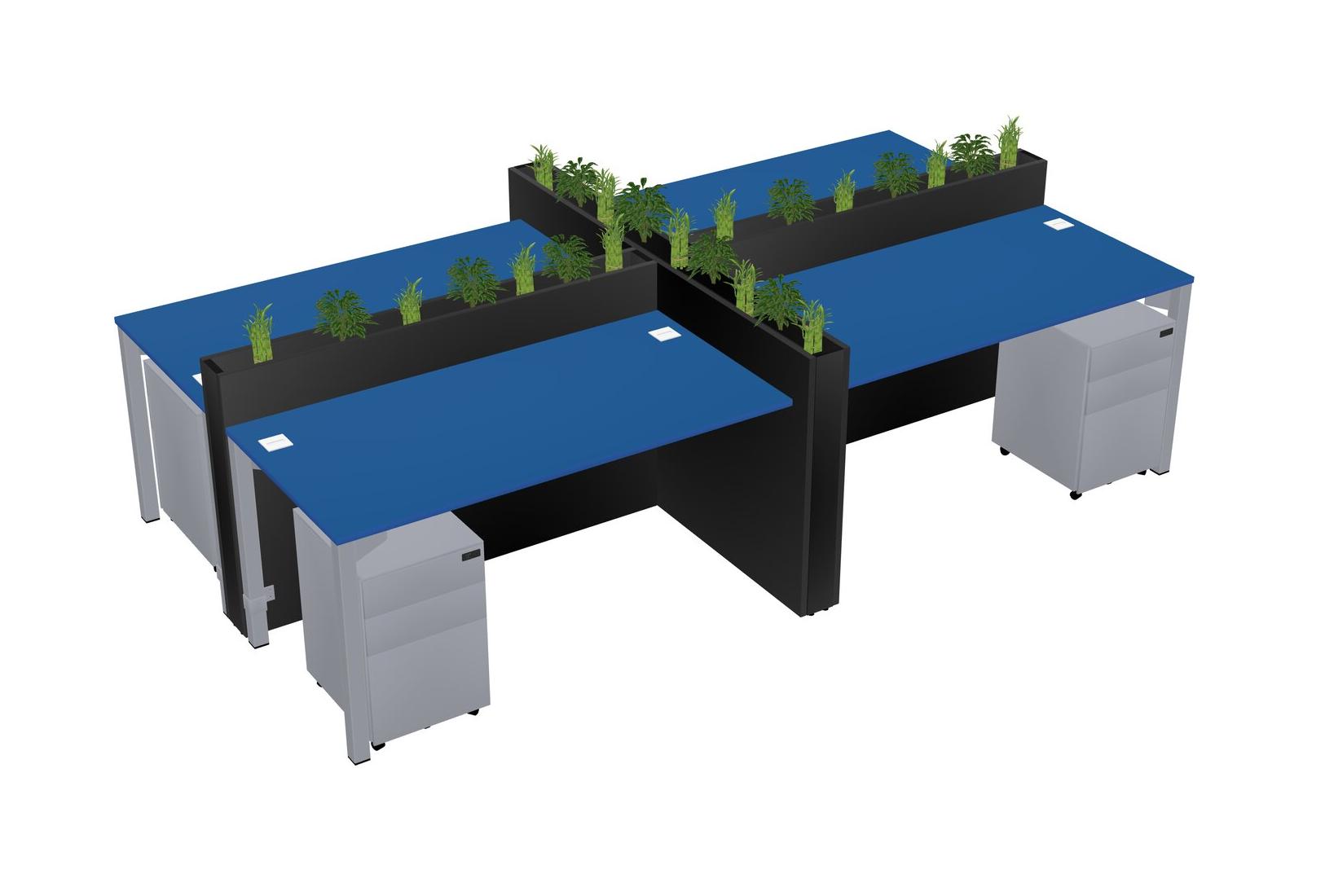 Prism Blue Rectangular Shared Office Desk For 4 Persons Let Nature Help Flourish Your Productivity The Base Comes With An Adjustable Shelf To Provide Space For Pots (Pots & Plants Sold Separately)