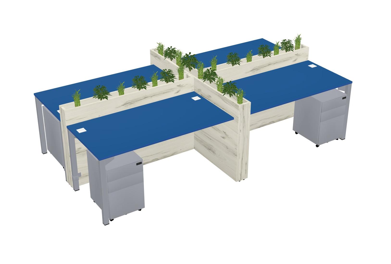 Prism Blue Rectangular Shared Office Desk For 4 Persons Let Nature Help Flourish Your Productivity The Base Comes With An Adjustable Shelf To Provide Space For Pots (Pots & Plants Sold Separately)
