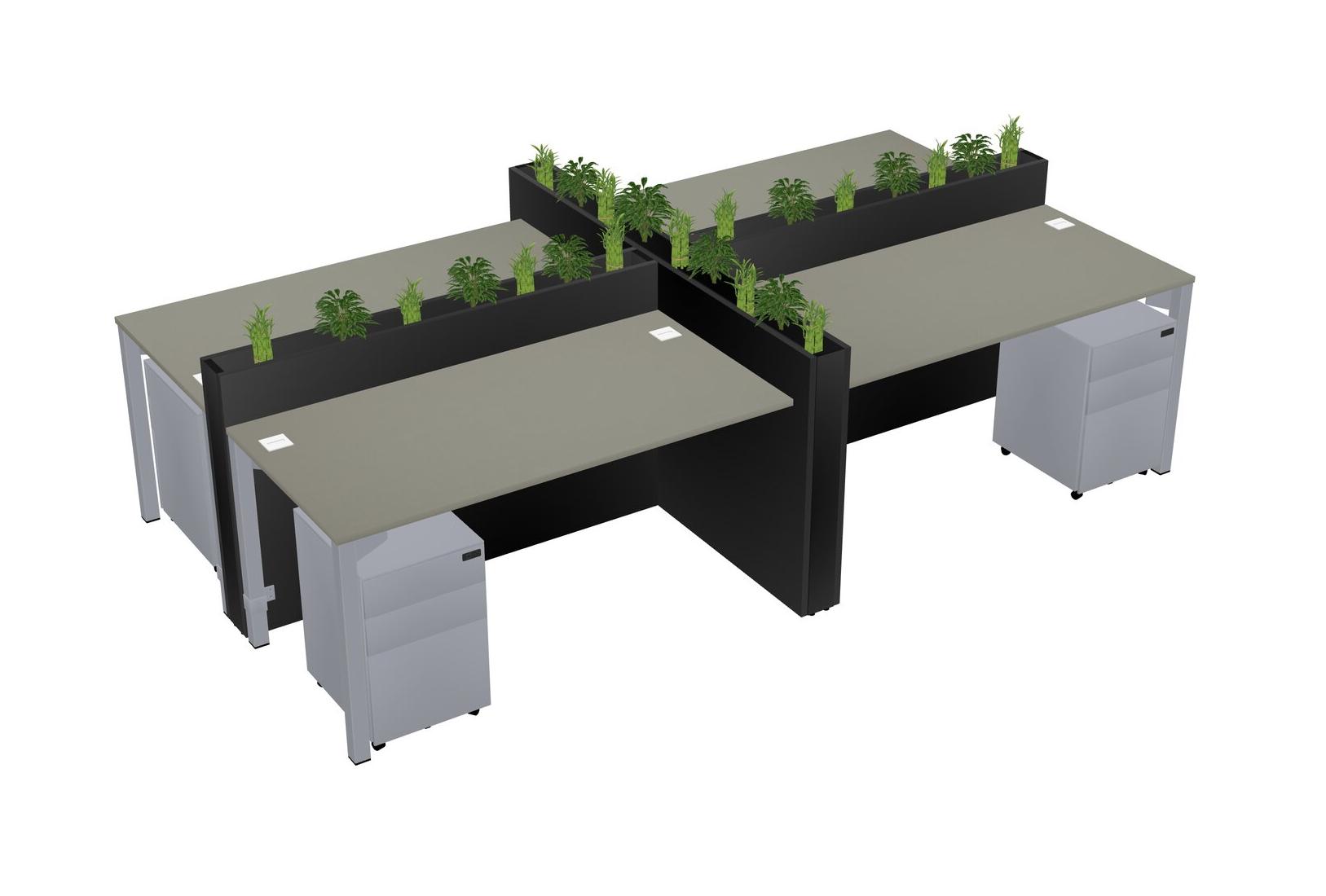 Grey Shadows Rectangular Shared Office Desk For 4 Persons Let Nature Help Flourish Your Productivity The Base Comes With An Adjustable Shelf To Provide Space For Pots (Pots & Plants Sold Separately)