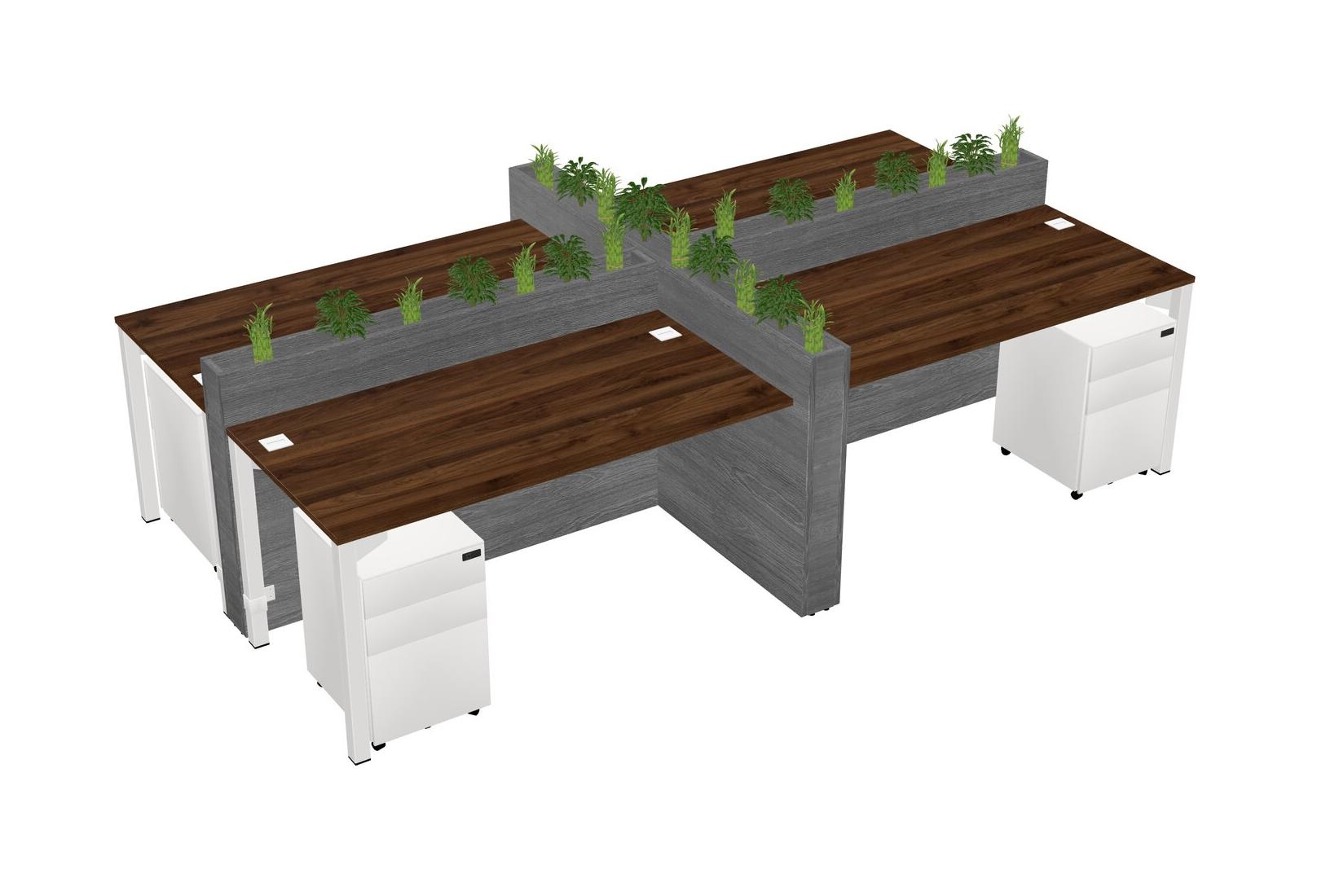Columbia Walnut Rectangular Shared Office Desk For 4 Persons Let Nature Help Flourish Your Productivity The Base Comes With An Adjustable Shelf To Provide Space For Pots (Pots & Plants Sold Separately)