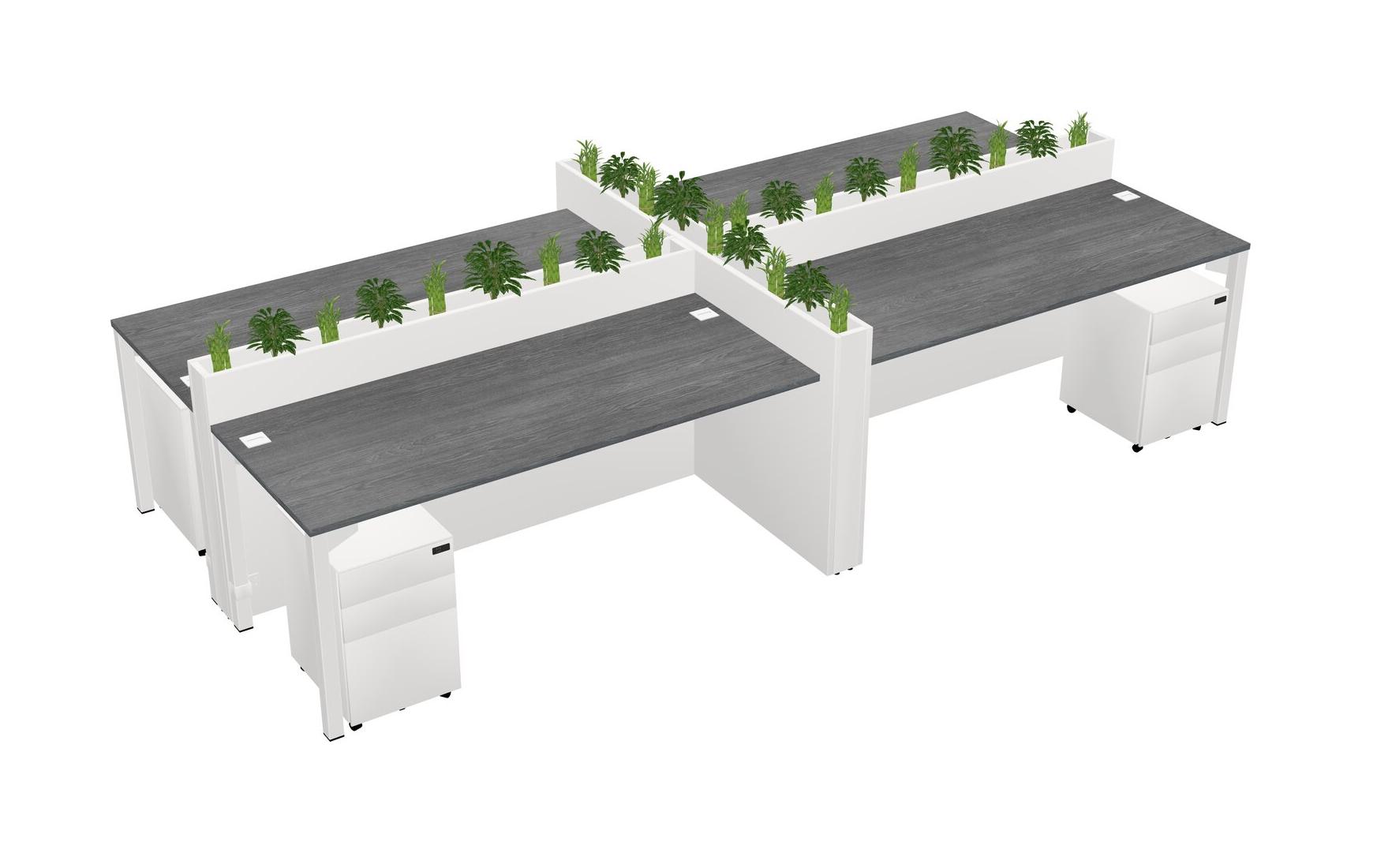 Grey Rectangular Shared Office Desk For 4 Persons Let Nature Help Flourish Your Productivity The Base Comes With An Adjustable Shelf To Provide Space For Pots (Pots & Plants Sold Separately)