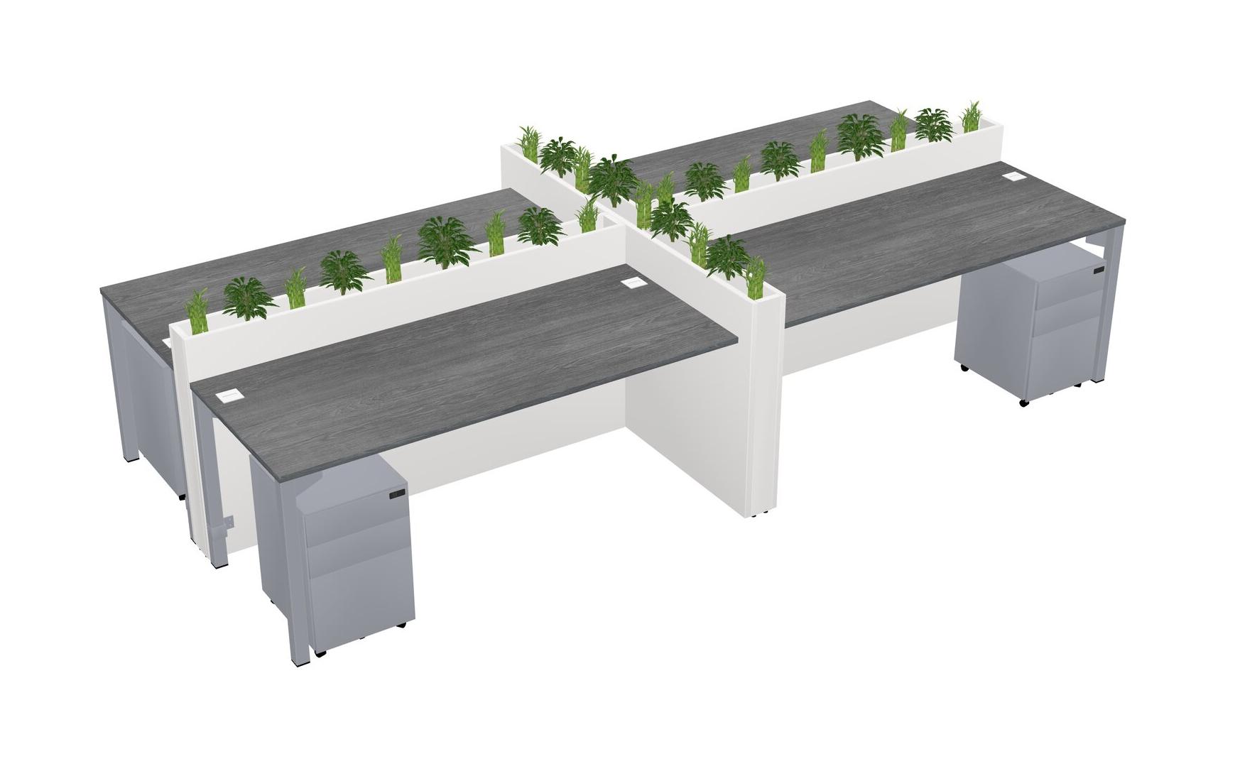 Grey Rectangular Shared Office Desk For 4 Persons Let Nature Help Flourish Your Productivity The Base Comes With An Adjustable Shelf To Provide Space For Pots (Pots & Plants Sold Separately)