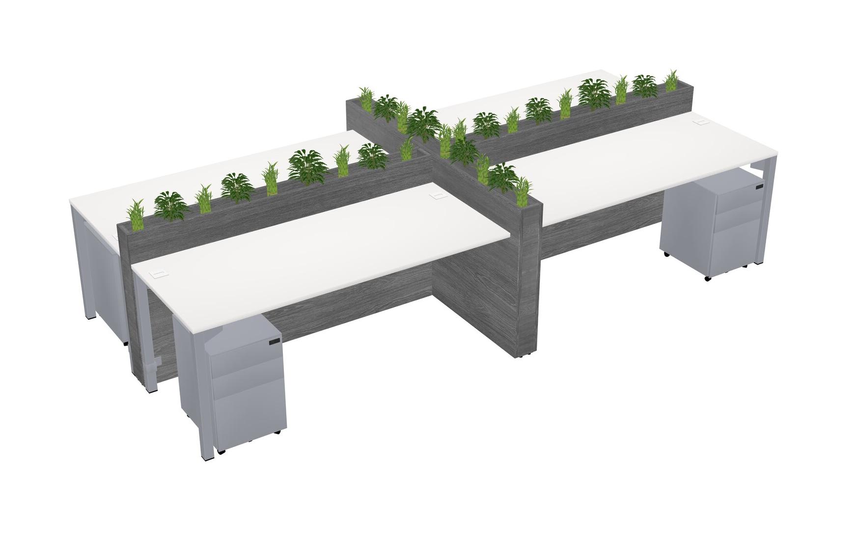 White Rectangular Shared Office Desk For 4 Persons Let Nature Help Flourish Your Productivity The Base Comes With An Adjustable Shelf To Provide Space For Pots (Pots & Plants Sold Separately)
