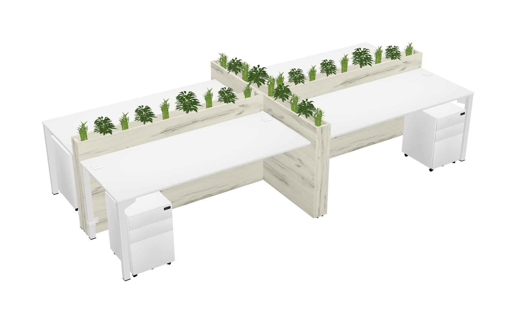 White Rectangular Shared Office Desk For 4 Persons Let Nature Help Flourish Your Productivity The Base Comes With An Adjustable Shelf To Provide Space For Pots (Pots & Plants Sold Separately)