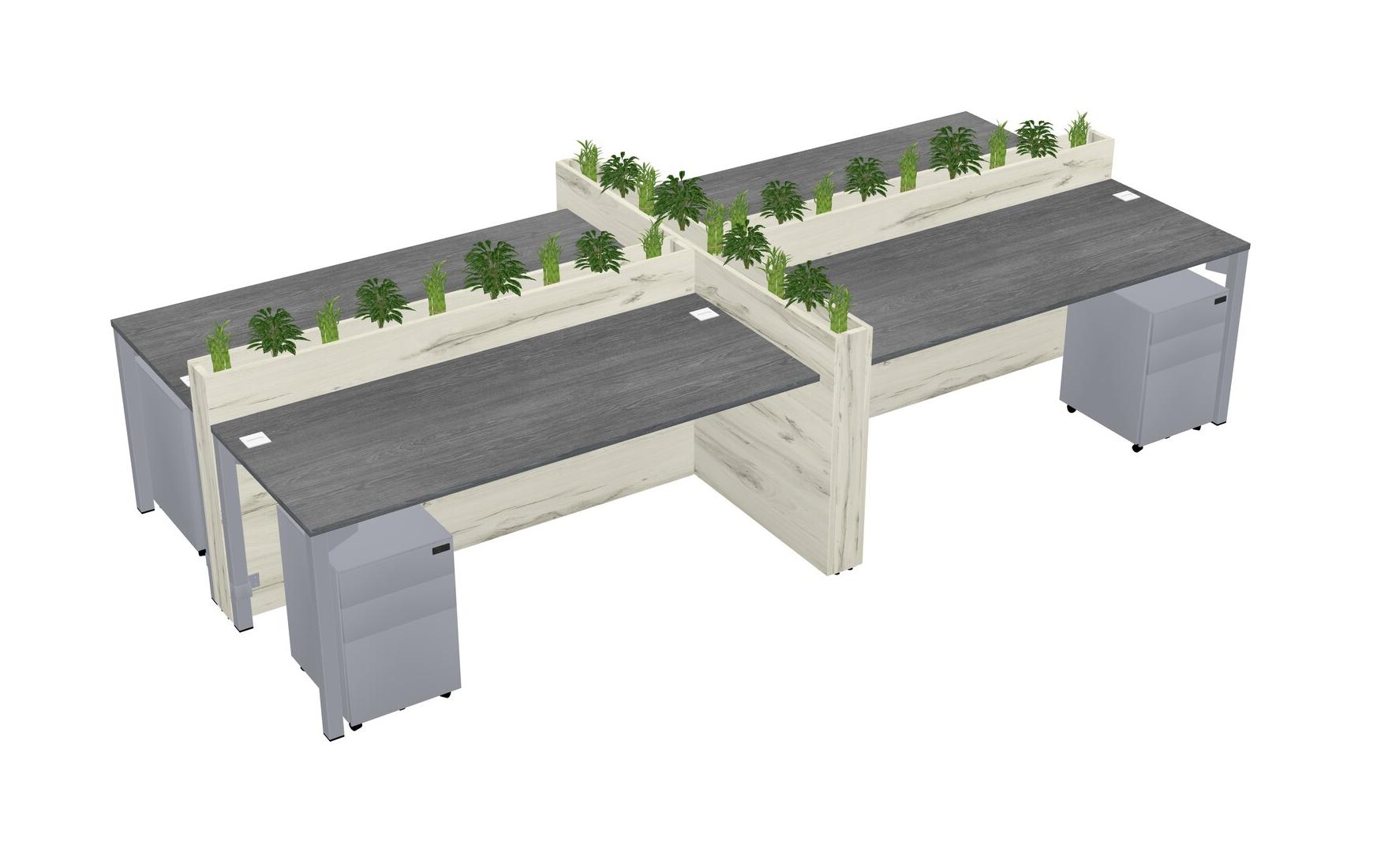 Grey Rectangular Shared Office Desk For 4 Persons Let Nature Help Flourish Your Productivity The Base Comes With An Adjustable Shelf To Provide Space For Pots (Pots & Plants Sold Separately)