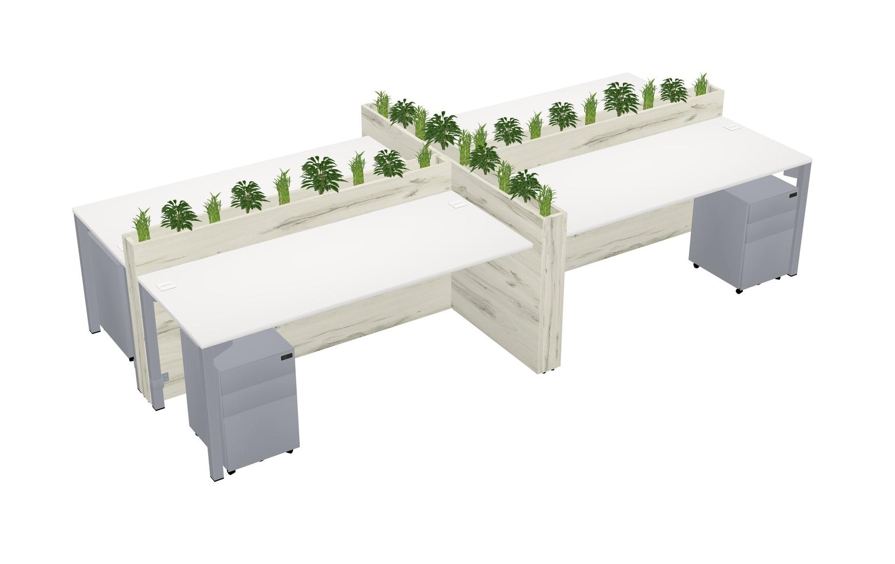 White Rectangular Shared Office Desk For 4 Persons Let Nature Help Flourish Your Productivity The Base Comes With An Adjustable Shelf To Provide Space For Pots (Pots & Plants Sold Separately)