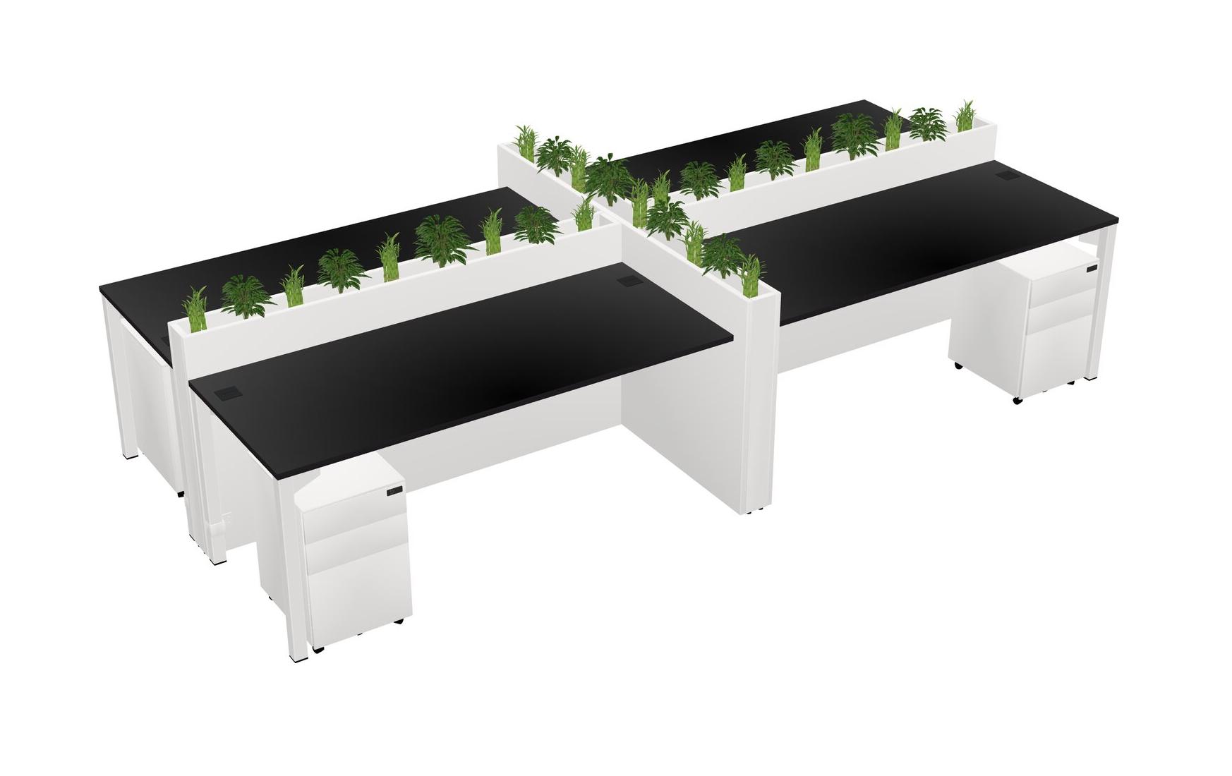Black Rectangular Shared Office Desk For 4 Persons Let Nature Help Flourish Your Productivity The Base Comes With An Adjustable Shelf To Provide Space For Pots (Pots & Plants Sold Separately)