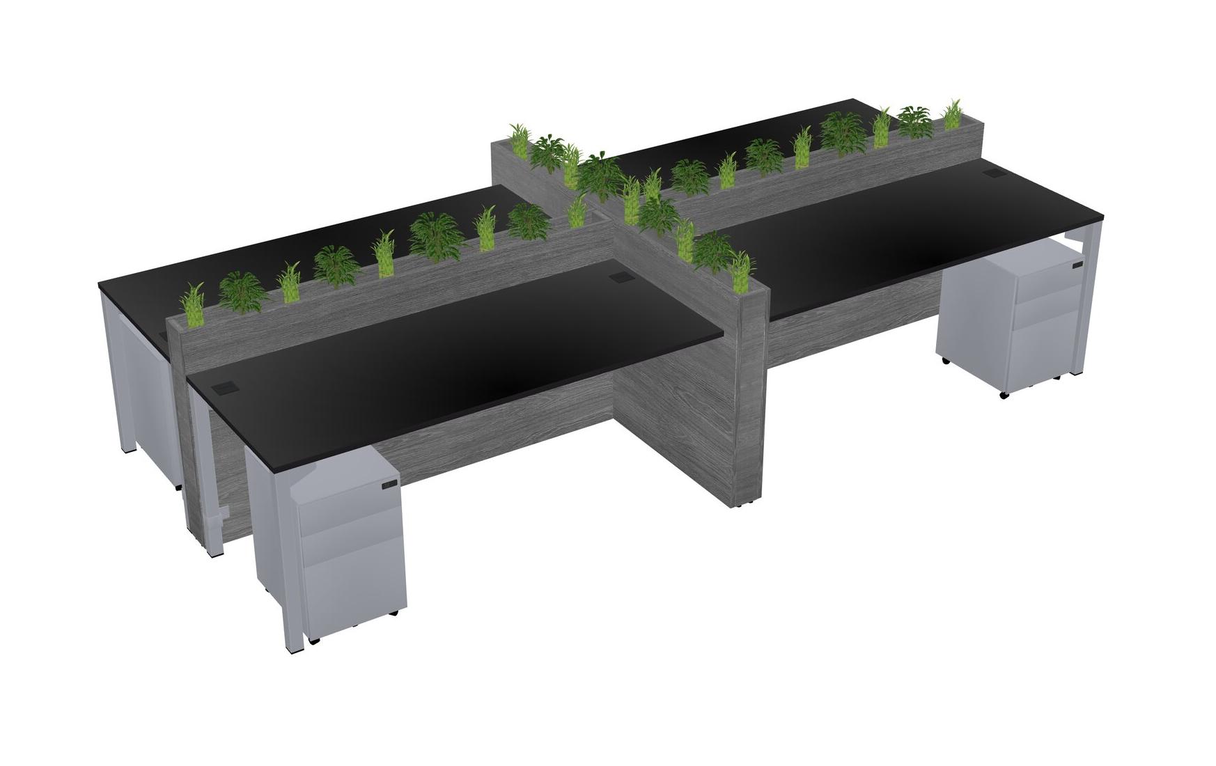Black Rectangular Shared Office Desk For 4 Persons Let Nature Help Flourish Your Productivity The Base Comes With An Adjustable Shelf To Provide Space For Pots (Pots & Plants Sold Separately)