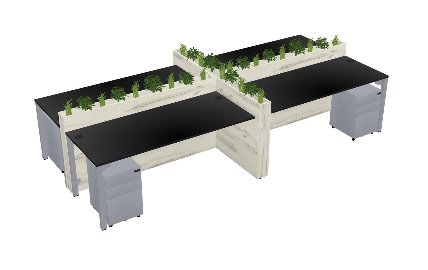 Black Rectangular Shared Office Desk For 4 Persons Let Nature Help Flourish Your Productivity The Base Comes With An Adjustable Shelf To Provide Space For Pots (Pots & Plants Sold Separately)