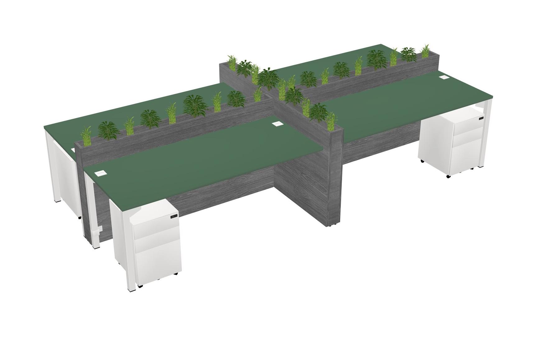 Green Rectangular Shared Office Desk For 4 Persons Let Nature Help Flourish Your Productivity The Base Comes With An Adjustable Shelf To Provide Space For Pots (Pots & Plants Sold Separately)