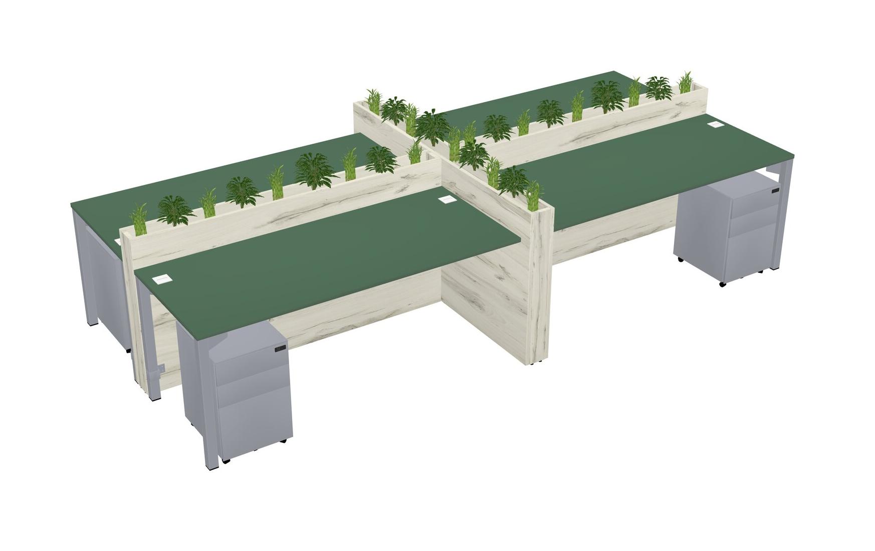 Green Rectangular Shared Office Desk For 4 Persons Let Nature Help Flourish Your Productivity The Base Comes With An Adjustable Shelf To Provide Space For Pots (Pots & Plants Sold Separately)