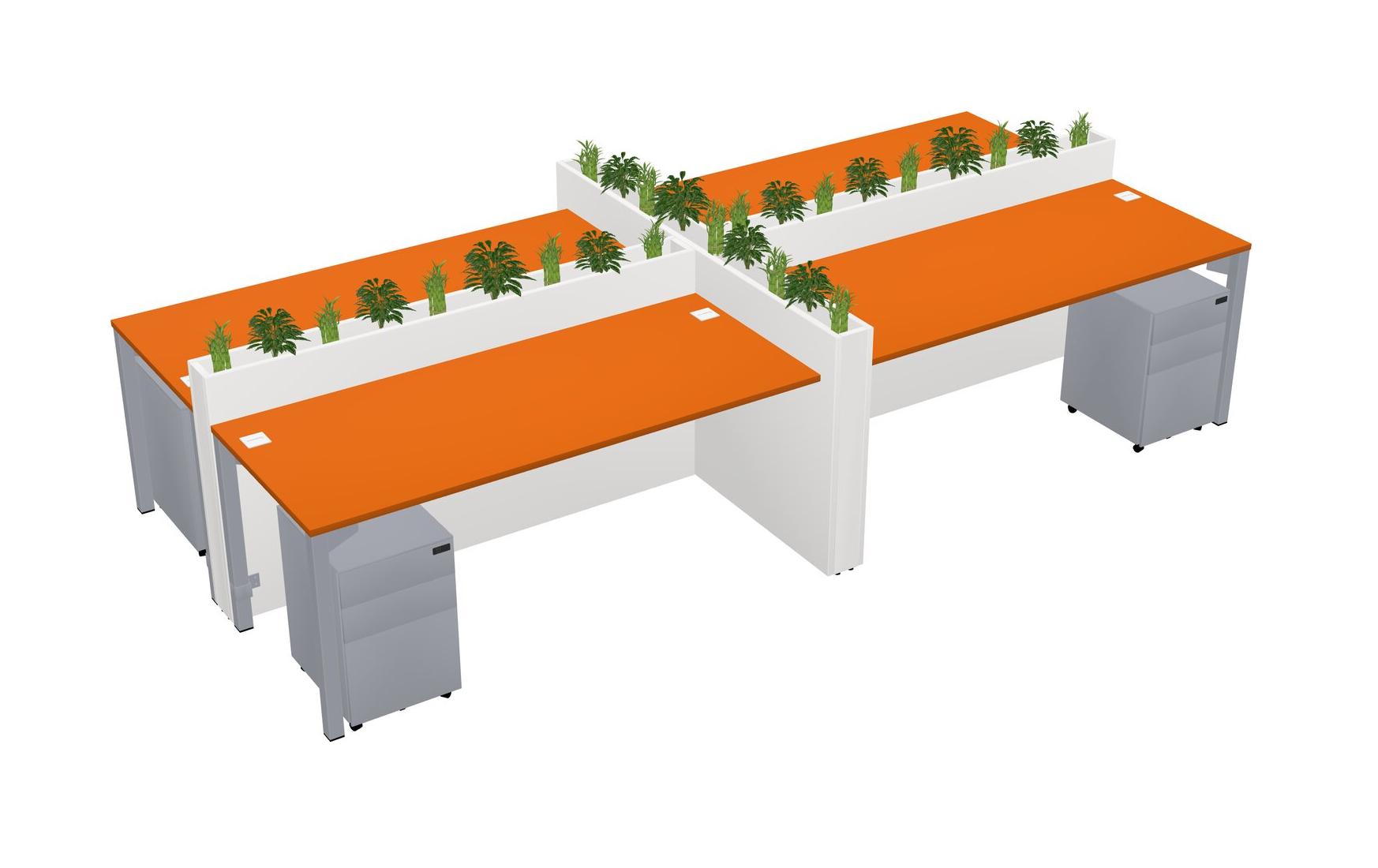 Orange Rectangular Shared Office Desk For 4 Persons Let Nature Help Flourish Your Productivity The Base Comes With An Adjustable Shelf To Provide Space For Pots (Pots & Plants Sold Separately)