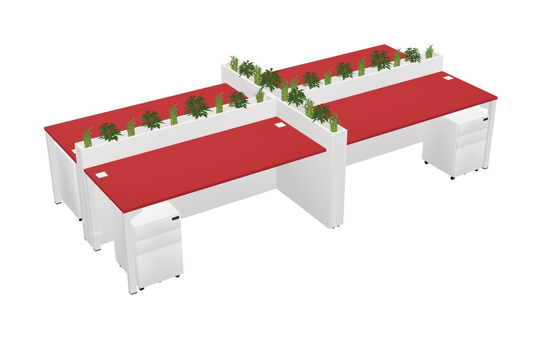 Prism Red Rectangular Shared Office Desk For 4 Persons Let Nature Help Flourish Your Productivity The Base Comes With An Adjustable Shelf To Provide Space For Pots (Pots & Plants Sold Separately)
