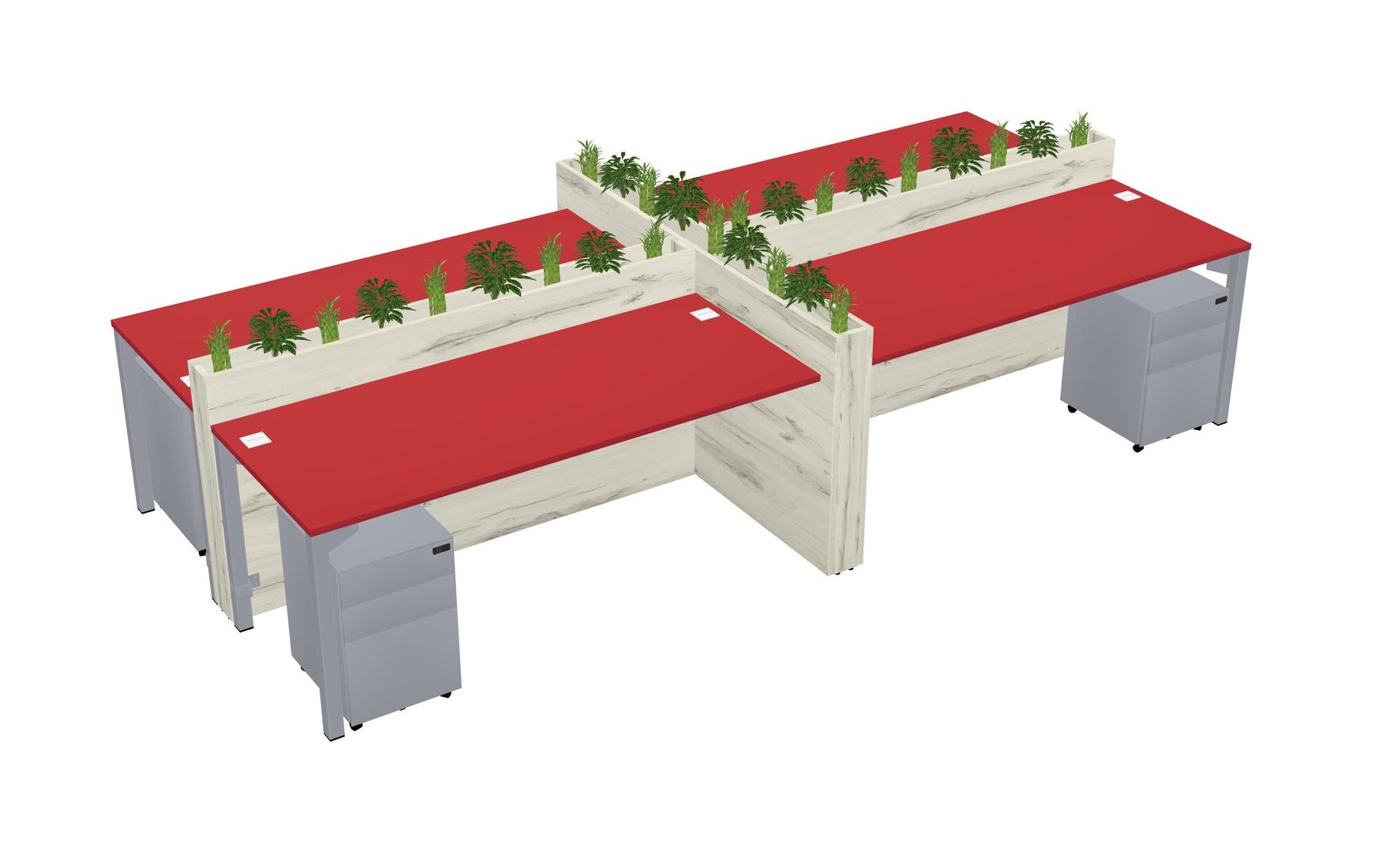 Prism Red Rectangular Shared Office Desk For 4 Persons Let Nature Help Flourish Your Productivity The Base Comes With An Adjustable Shelf To Provide Space For Pots (Pots & Plants Sold Separately)